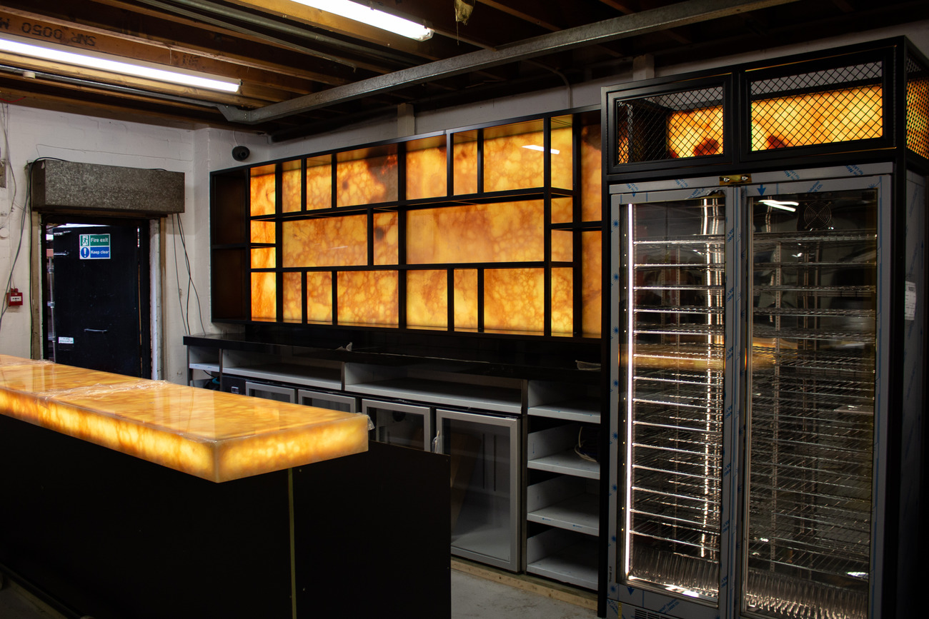 Similarly, there are different choices available to you for the materials to be used as shelves. We can weld in for you steel shelves, or you may prefer to get your own glass or perspex ones, or even timber can be used, if this is more in keeping with the look you are after. We can also make provision for you if you are wanting to add lighting when it has been installed and fitted.